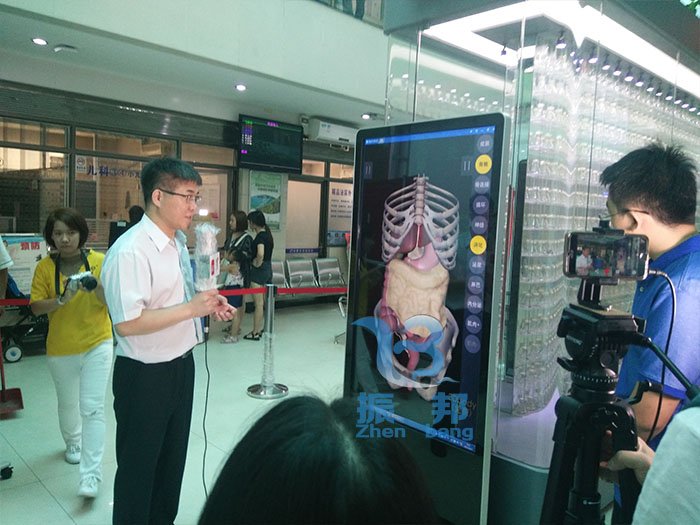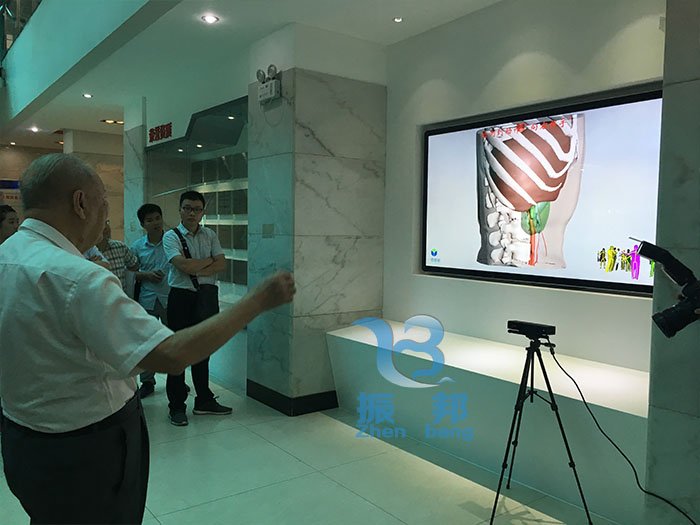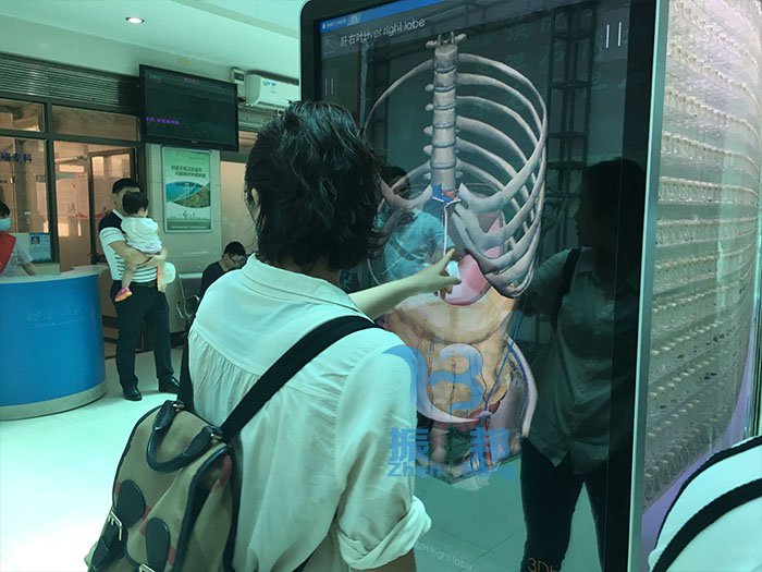 參觀者可以通過(guò)觸摸查詢系統(tǒng),查詢觀看人體肝膽1:1硬質(zhì)透明3D打印模型,逼真現(xiàn)實(shí)地展示了肝臟及肝內(nèi)外膽道、血管結(jié)構(gòu)、大小、比例及相互伴行、比鄰解剖關(guān)系。