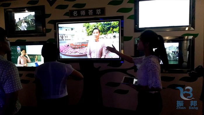 點(diǎn)擊名師按鈕了解名師信息,振邦視界通過五屏聯(lián)動(dòng)系統(tǒng)分別播放名師的介紹,