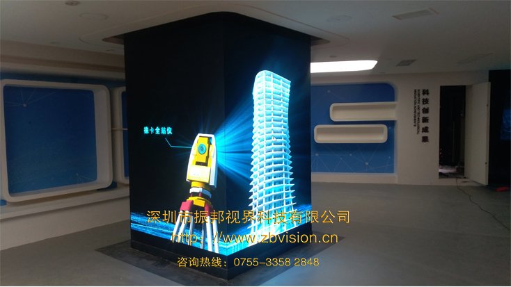 通過特殊的LED包裹方式將視頻播放到折疊拼接的顯示屏上,由多塊屏幕組成,高清影片分布式播放技術(shù)以及專業(yè)影院級(jí)聲光電等一系列高新技術(shù)與現(xiàn)代藝術(shù)完美融合。