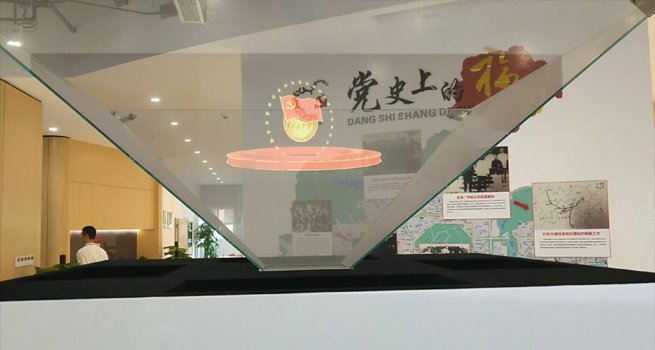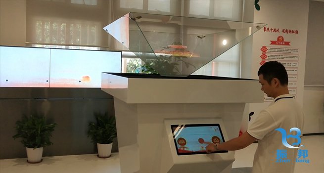 通過多點觸摸臺控制展示內(nèi)容,點擊黨的圖標,內(nèi)容將呈現(xiàn)在全息柜上以360°旋轉(zhuǎn)方式展示,通過搜索產(chǎn)品的關鍵詞,可對產(chǎn)品進行搜索。
