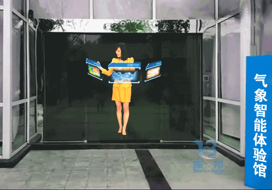 虛擬迎賓,又稱虛擬解說員、虛擬主持、虛擬播音員,是全息投影中的一種,虛擬出逼真的人物形象,當參觀者走到感應區(qū)域時,互動感應系統(tǒng)會將導覽員形象投射在特種玻璃屏幕上,形成科幻電影般的空間形象,歡迎來賓光臨,為參觀者介紹展館的主題分布及特色展區(qū)。