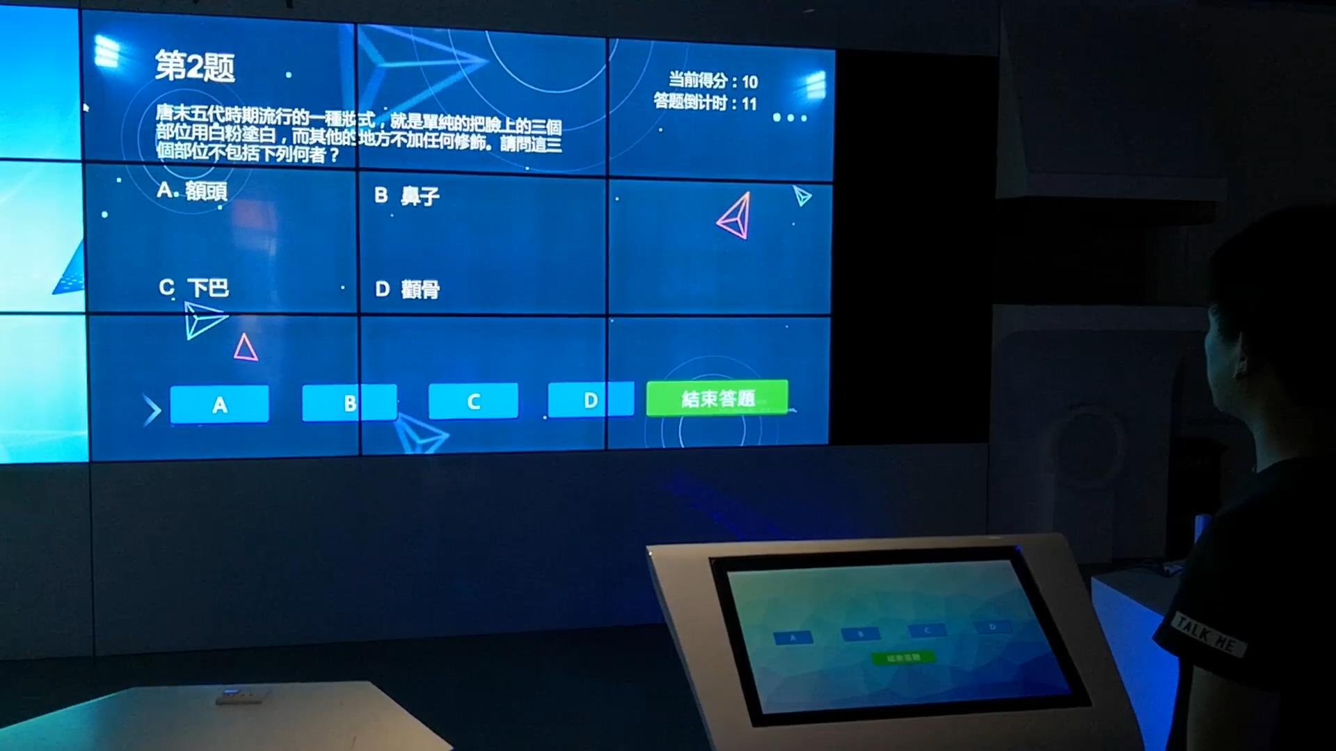 雙屏觸控款-互動問答系統(tǒng)由觸摸一體機、擴展顯示屏及互動問答系統(tǒng)構(gòu)成,讓體驗者通過觸控答題來學(xué)習(xí)了解相關(guān)知識。