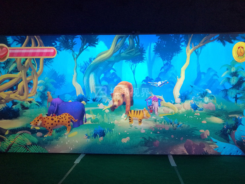 簡介: 魔法森林是一套由涂鴉端與互動端組成的寓教于樂的互動系統(tǒng)。 該游戲有10種動物模型可供選擇,體驗(yàn)者可以在有動物模型輪廓的畫紙上給小動物涂上自己喜歡的顏色,涂鴉完成后通過掃描儀掃描進(jìn)互動系統(tǒng),顯示幕墻上森林場景里立馬出現(xiàn)掃描進(jìn)去的動物,觸