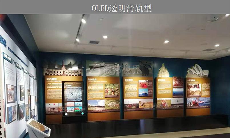 OELD款-電動滑軌互動系統(tǒng)是由自發(fā)光OLED顯示設(shè)備、電動滑軌設(shè)備及控制系統(tǒng)構(gòu)成,主要用來展示帶時間軸性質(zhì)的發(fā)展歷程、工藝流程或產(chǎn)品、案例、人物介紹展示。
