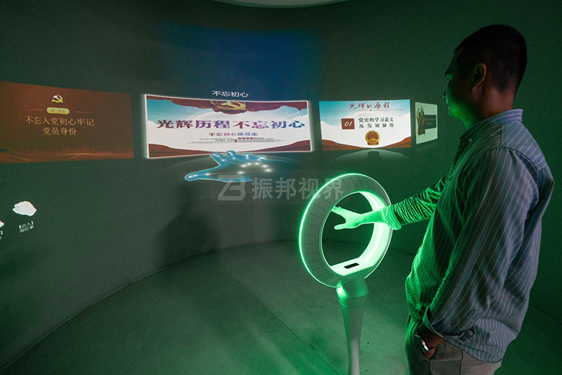 產(chǎn)品簡介:簡介: 燈效款-手勢識別互動系統(tǒng)是手勢識別攝像頭、發(fā)光手環(huán)、顯示幕墻及互動控制系統(tǒng)構(gòu)成,體驗者可利用手勢控制圖片或視頻的查詢導(dǎo)覽,每種手勢都對應(yīng)有一種發(fā)光手環(huán)的燈效呈現(xiàn),讓人在體驗時極大的提高了炫酷科技感。 功能介紹: 1.單手體感互動查詢; 2.