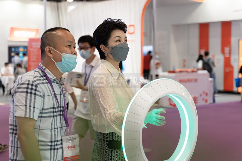 3. 發(fā)光手環(huán)待機時會呈現(xiàn)呼吸燈的燈效,吸引體驗者前來體驗,當手進入發(fā)光圈手勢識別區(qū)后,每一種不同的手勢都會伴隨有不同的發(fā)光圈燈效,以提高體驗感;