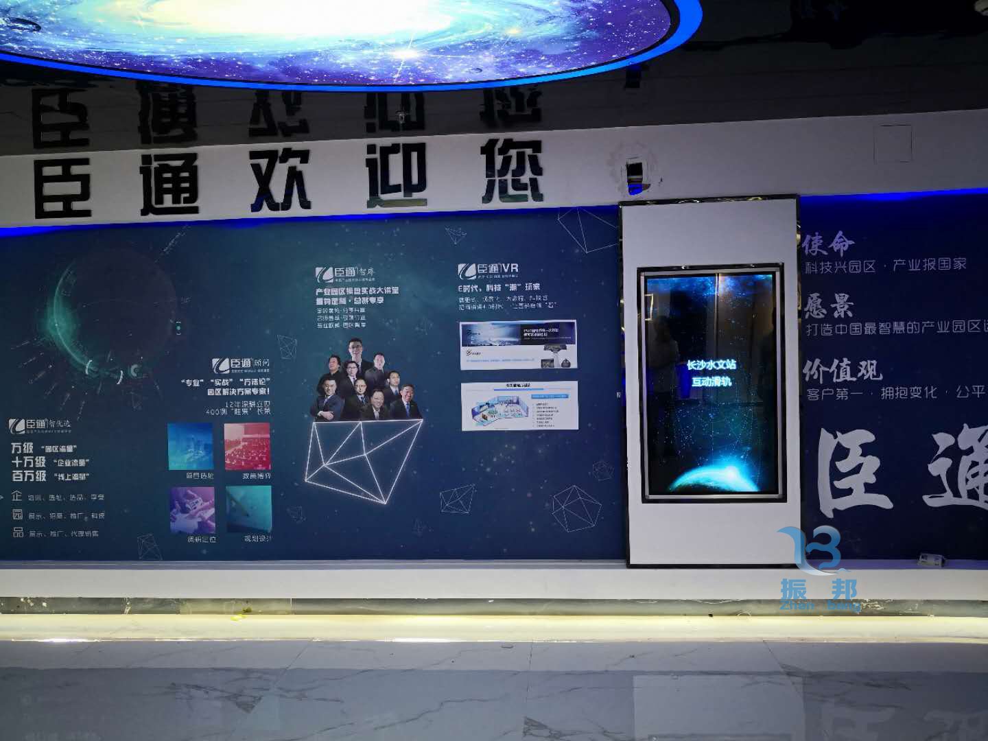 系統(tǒng)由滑軌套件、節(jié)點感應播放程序、控制系統(tǒng)等部件組成,能選擇某個演示內(nèi)容,一體機顯示屏播放相應的內(nèi)容,可以是圖片、文字、視頻等。