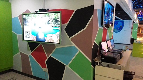 展項(xiàng)描述: 玩家在區(qū)域內(nèi)站定后,通過手勢移動(dòng)選擇拍照的背景,進(jìn)行拍照留念。是利用摳像軟件來完成拍照操作。 展項(xiàng)特點(diǎn): 摳像技術(shù)的虛擬環(huán)境下的實(shí)時(shí)自助照相技術(shù),它能將自助式照相、可選虛擬背景下照相和將多