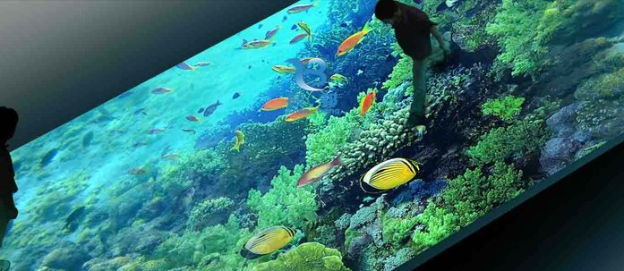投影機(jī)方式:當(dāng)展廳或展館內(nèi)光線條件允許時(shí),建議優(yōu)先使用投影機(jī)方式。