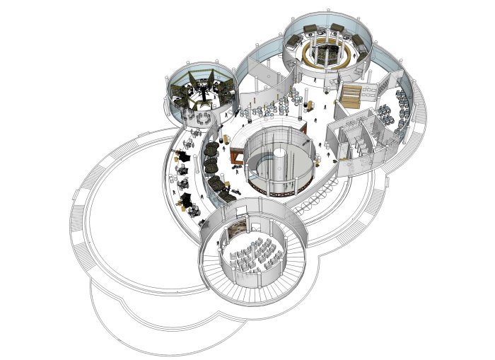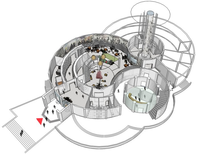 序廳講解內(nèi)容分為紀(jì)念館歷史背景和紀(jì)念館功能分區(qū)介紹,其中紀(jì)念館功能分區(qū)介紹信息量更為巨大,結(jié)合生動(dòng)形象的三維軸側(cè)圖,給參觀者指引紀(jì)念館分區(qū),引導(dǎo)路線,快速到達(dá)參觀者感興趣分區(qū)。
