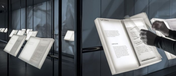 從巨幕出來后,紀(jì)念館回歸展項(xiàng)和展柜實(shí)物結(jié)合展示,通過各種各樣的小展項(xiàng)活化實(shí)物和圖文展板內(nèi)容,例如實(shí)物展示的書冊報(bào)紙,或紅頭文件等,可通過互動(dòng)翻書,以電子書形式展示,結(jié)合隔空翻頁或觸摸翻頁形式,增加展示趣味性。