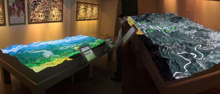 對于特別珍貴的物品可用透明展示柜展示,既能觀看到實(shí)物,又能包含到物品,而且在展示的玻璃上,能顯示對應(yīng)的物品介紹,虛擬的物品由參觀者控制展示,多媒體內(nèi)容結(jié)合真實(shí)的實(shí)物,配合參觀者的控制,達(dá)到三者互動(dòng)。