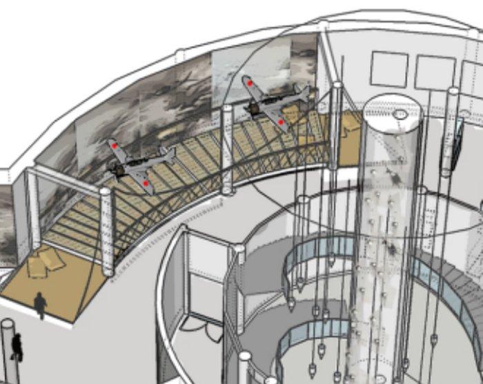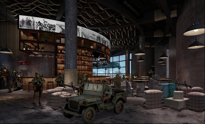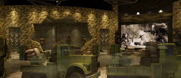 特別設(shè)立模擬戰(zhàn)場裝置,真實(shí)還原戰(zhàn)場環(huán)境,參觀者途經(jīng)鐵索橋道,橋道設(shè)置成左右搖晃搖擺,配合實(shí)物轟炸機(jī)俯沖到參觀者頭頂上模擬轟炸,震撼的音箱效果,完美還原炸彈的威力和聲浪沖擊參觀者,整個(gè)模擬戰(zhàn)場裝置,以最貼合實(shí)景的形式和參觀者互動(dòng),將會(huì)是戰(zhàn)地紀(jì)念館最具互動(dòng)性的展項(xiàng)。