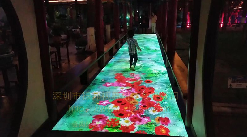 地面互動(dòng)投影可以將任意一塊平淡無奇的地板區(qū)域變成炫酷高科技實(shí)時(shí)交互的神奇之地。是參與者和地面上影像的真實(shí)互動(dòng),使多名參與者融入場(chǎng)景中,同時(shí)參與游戲。