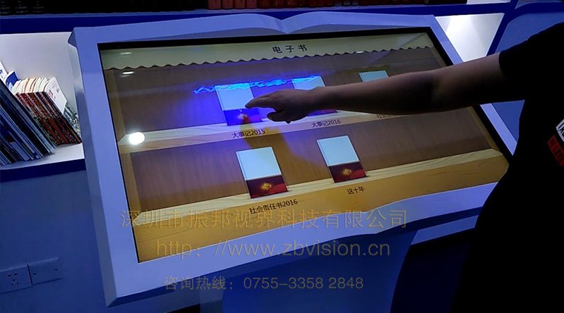 電子翻書外觀猶如一本打開的圖書,當(dāng)觀眾伸手做出翻書的動(dòng)作時(shí),會(huì)驚喜地發(fā)現(xiàn)這本虛擬圖書竟然真的可以翻頁(yè),展示栩栩如生的動(dòng)態(tài)翻頁(yè)效果,可伴有音效。
