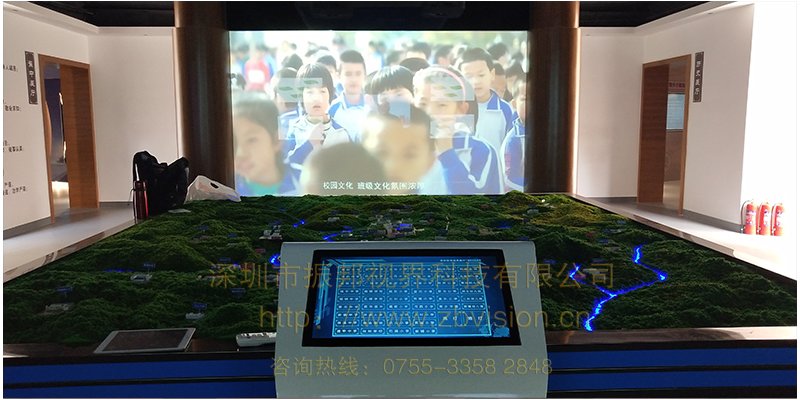 通過觸摸一體機(jī)+沙盤模型,點(diǎn)擊觸摸機(jī)上的學(xué)校名稱按鈕,大屏幕將播放該學(xué)校的相關(guān)信息,及在沙盤上該學(xué)校建筑模型燈光會(huì)亮起,方便參觀者一眼能識(shí)別到該學(xué)校的位置,及建筑風(fēng)格。